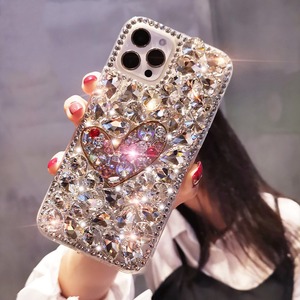 レッド/ピンク【 IPhone 6-15】iPhone case hart luxury rhinestone♡C214